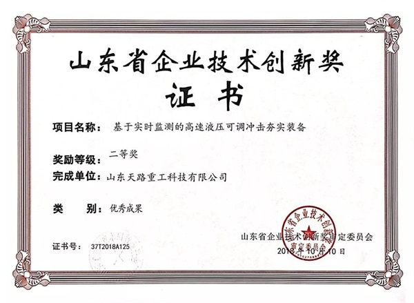 近日,根據(jù)《山東省企業(yè)技術(shù)創(chuàng)新獎審定管理辦法》和有關(guān)評審細則,由省企業(yè)技術(shù)創(chuàng)新促進會、省企業(yè)技術(shù)進步促進中心和省中小企業(yè)發(fā)展促進中心聯(lián)合組織的2017年度技術(shù)創(chuàng)新**成果、**新產(chǎn)品、**論文評選活動結(jié)束,天路重工“基于實時監(jiān)測的高速液壓可調(diào)沖擊夯實裝備”榮獲山東省企業(yè)技術(shù)創(chuàng)新**成果二等獎。