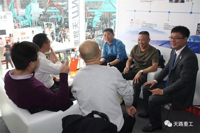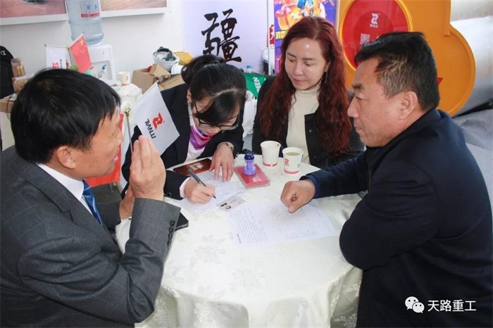 展會(huì)現(xiàn)場(chǎng),天路重工展廳內(nèi)外人潮涌動(dòng),熱鬧非凡,吸引了大批國(guó)內(nèi)外客戶(hù)及同行前 來(lái)參觀、洽談,更有多個(gè)客戶(hù)當(dāng)場(chǎng)簽下產(chǎn)品訂單,亦有多家公司對(duì)表示了天路重工產(chǎn)品的 高度認(rèn)可,達(dá)成合作意向。