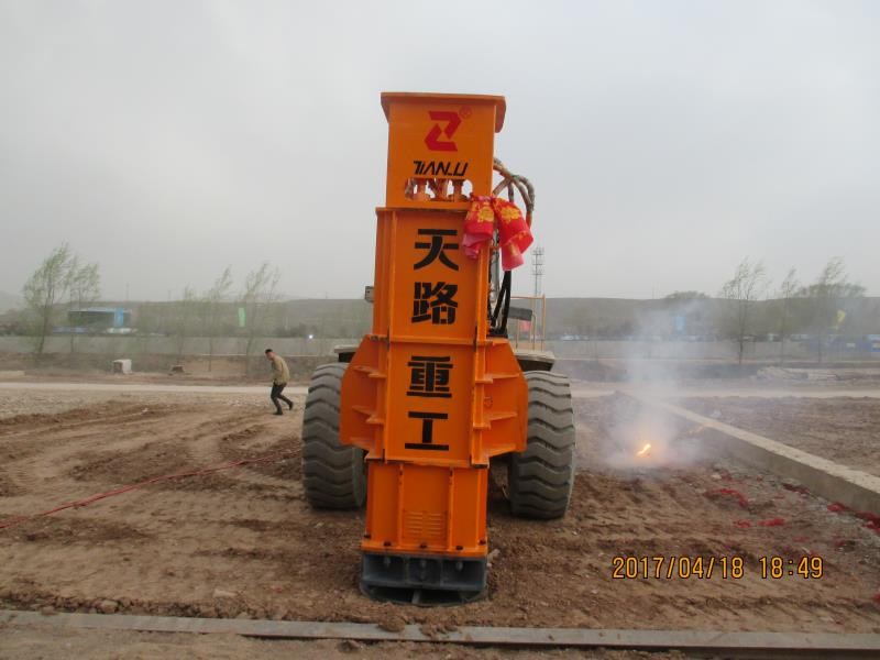 夯實(shí)機(jī)液壓系統(tǒng)的主要元件為雙作用活塞缸、高低壓蓄能器、電磁換向閥等。直接利用裝載機(jī)或挖掘機(jī)的液壓系統(tǒng)和電源,靈活方便,機(jī)動(dòng)性好。基本原理是在重力和液壓力的作用下,用液壓缸將夯錘提升至一定高度后釋放,夯錘在重力和液壓蓄能器的共同作用下加速下落,落下后擊打帶緩沖墊的、靜壓在地面上的夯板,并通過(guò)夯板夯擊地面,與裝載機(jī)或挖掘機(jī)配套使用,機(jī)動(dòng)靈活地對(duì)不同的位置進(jìn)行準(zhǔn)確、快速的夯實(shí),從而滿(mǎn)足對(duì)作業(yè)面積的單點(diǎn)或連續(xù)夯實(shí)要求,**路基整體施工質(zhì)量,有效減少結(jié)合部工后沉降,彌補(bǔ)大型壓實(shí)機(jī)械無(wú)法壓實(shí)到位的質(zhì)量缺陷。